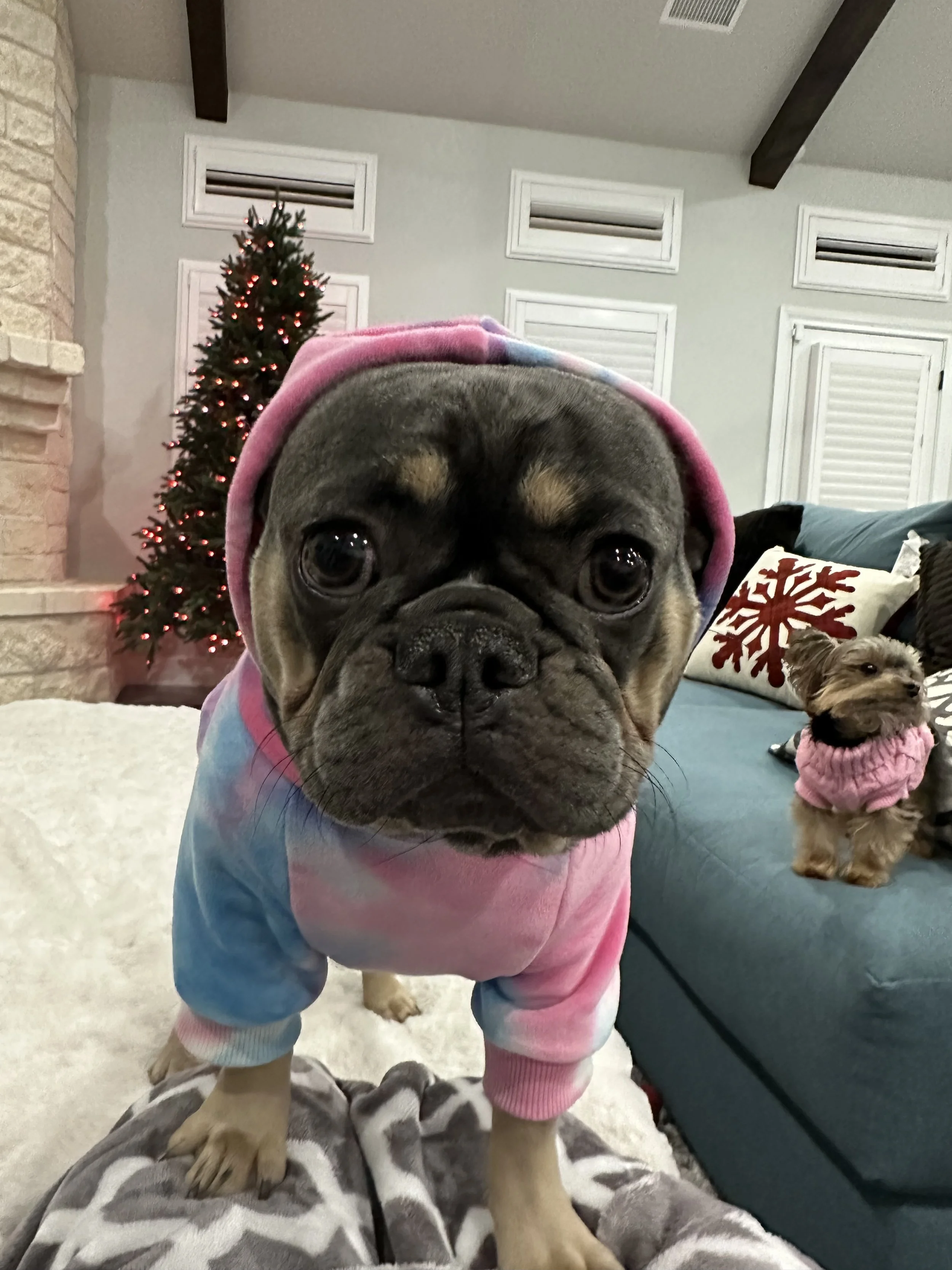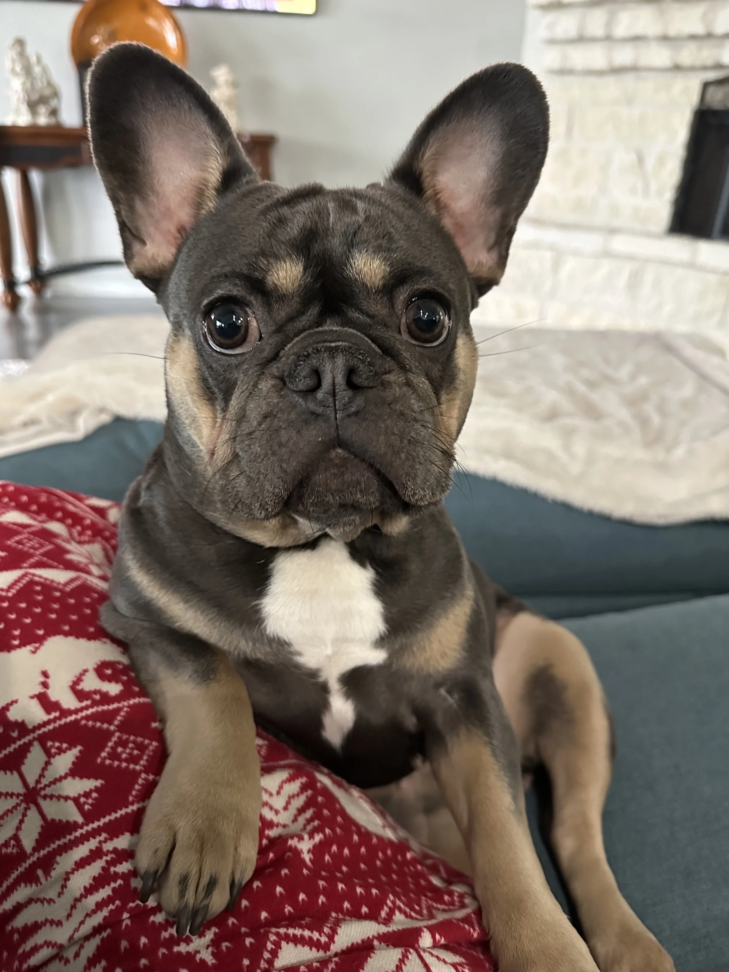 Meet Olive, the adorable blue and tan French Bulldog who holds a special place in our hearts as a beloved member of our family. With her unique coat colors and irresistible charm, Olive captivates everyone she meets. Always by our side, she brings joy and happiness to our lives. Whether cuddling up on the couch or accompanying us on adventures, Olive's playful nature and affectionate personality uplift our spirits and create memories that will last a lifetime. As part of our family, Olive has woven herself into the very fabric of our daily lives, reminding us of the unconditional love and loyal companionship that only a furry friend can bring.